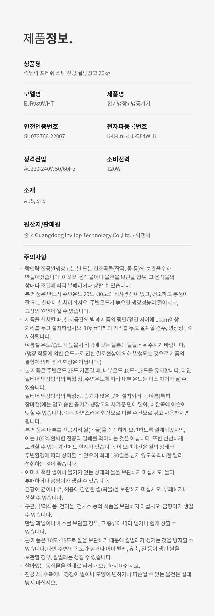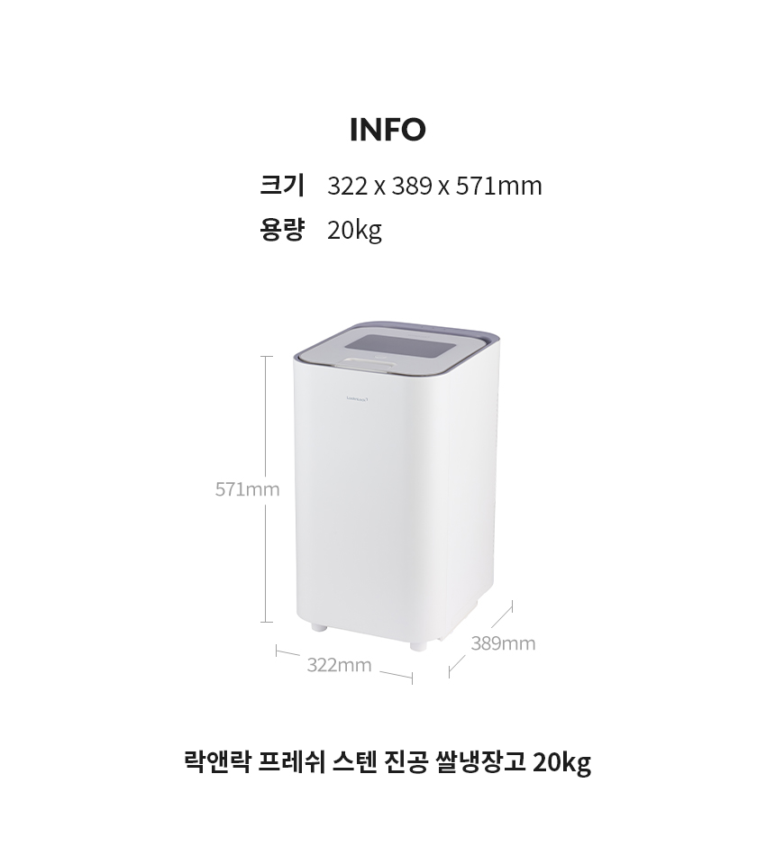 • [쿠폰가 229,900원] 프레쉬 스텐 진공 쌀 냉장고 20kg