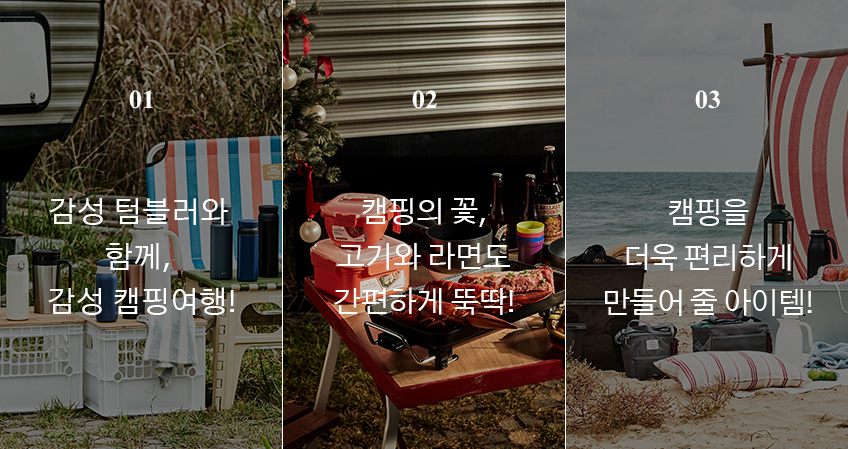 이번 테마는 캠핑을 더욱 알차게 만들어주는 감성 캠핑 용품을 소개해 드립니다.