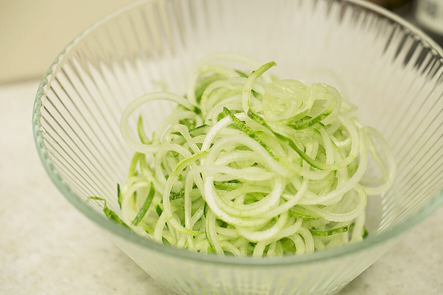 연어와 함께 국수처럼 잘라 조리했더니