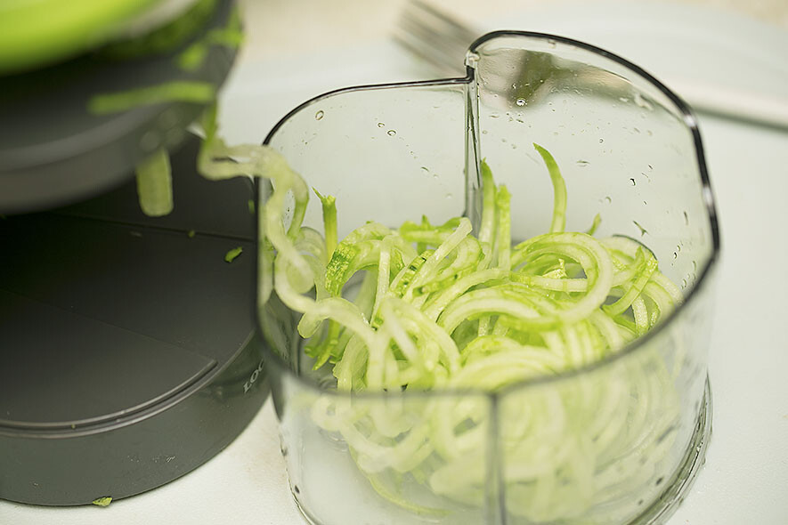 원통형 나선 슬라이서로 슬라이스한 채소는