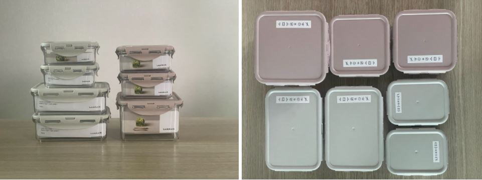 밀폐용기 하나의 무게가 꽤 나가는편이예요.