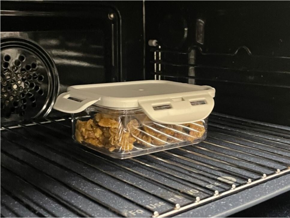 밀폐용기 사이즈에 딱 맞게 들어갑니다.