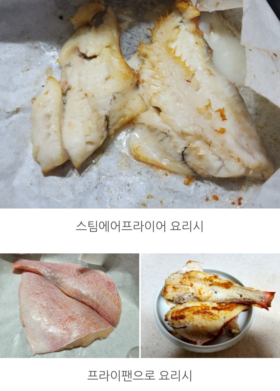 남편은 에어프라이어로 구운 촉촉한 생선을 선호했는데 생선구울 때 나는 연기와 냄새가 전혀 없어 정말 편했다. 딸아이는 프라이팬에 구워 바삭하게 먹는 생선이 좋다고 했지만, 연기와 냄새가 집안에 차올랐다. 몸에 좋은 생선을 먹고 싶어도 집안에 냄새와 연기가 차서 못드셨던 분들은 에어프라이어 강력 추천한다.
