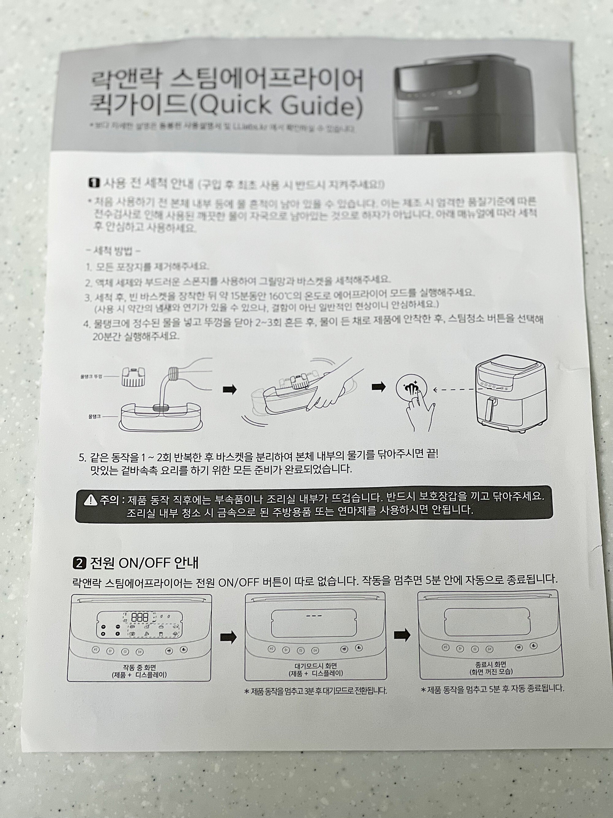락앤락 스팀 에어프라이어는 세척 기능이 있어서 너무 편해요.