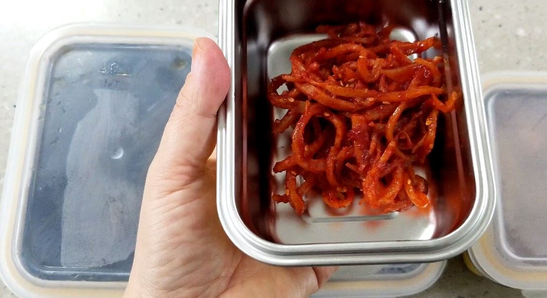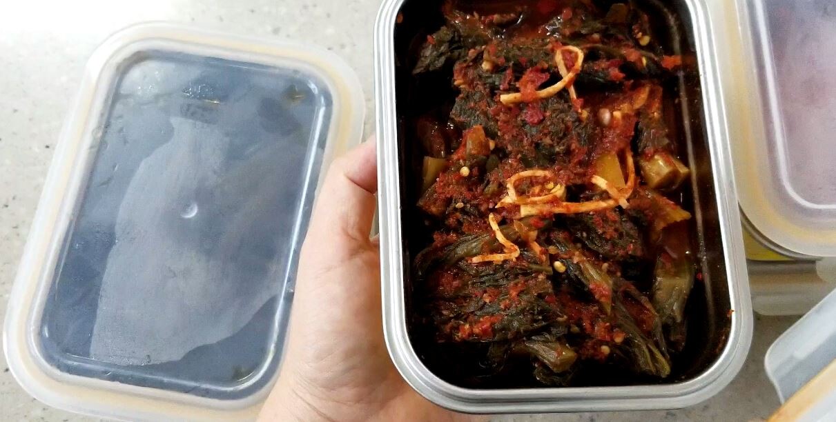 저는 주로 김치류(갓김치, 깻잎김치, 소량만 남은 배추김치)나 데울 필요 없는 빨간 양념이 된 밑반찬들을 보관하는데, 확실히 맛이 오랫동안 신선하게 유지되고 기대 이상으로 맛있어서 놀랐어요. 플라스틱에 담은 것보다 천천히 익고, 더 시원한 맛이 나요.