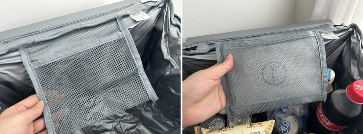 보냉 쿨러백 안쪽엔 메쉬주머니가 있는데