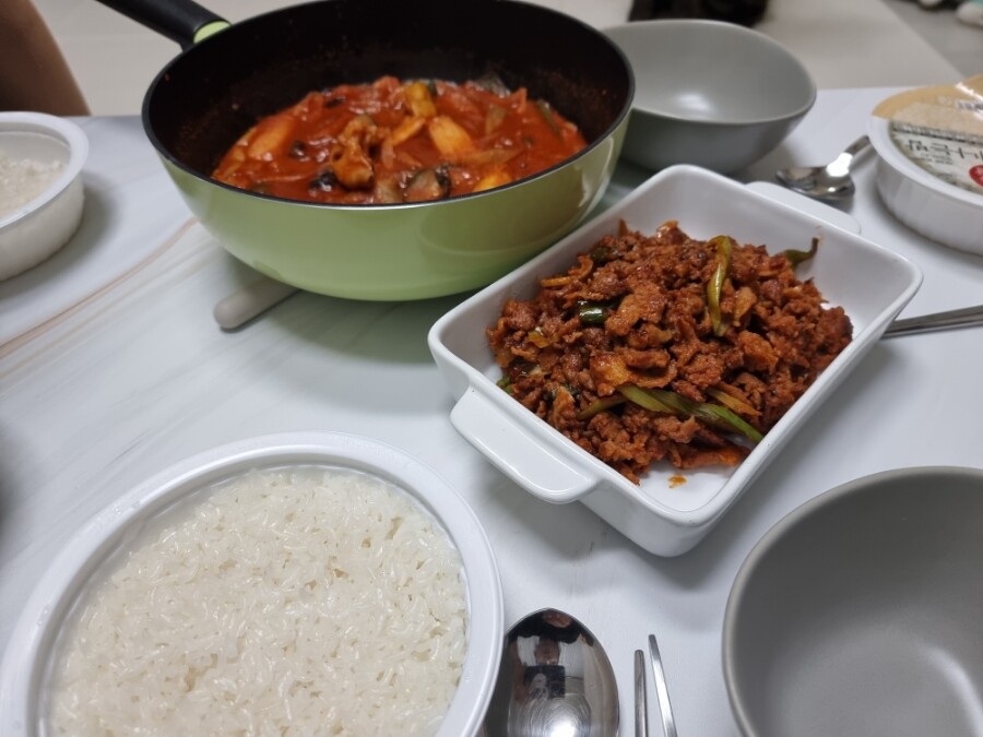 쁘띠웍은 컬러도 정말 예뻐서 요리한 그대로 테이블에 올려두었는데도, 다른 그릇 없어도 돋보이더라구요.