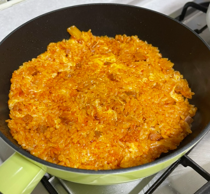 그렇게 뜸들이기?!가 끝나고 노릇노릇하게 된 볶음밥 와구와구 먹었습니다. ㅋㅋ