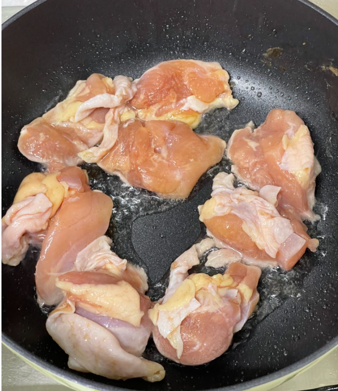 식용유 한바퀴 둘러주고, 닭고기 지글지글 볶았습니다.