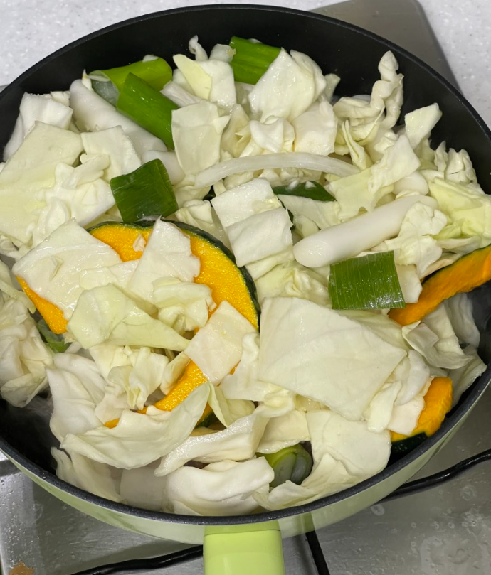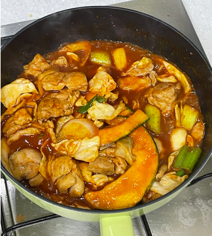 세척한 야채 넣고 소스 넣고 중불에 끓이면 되는데요!