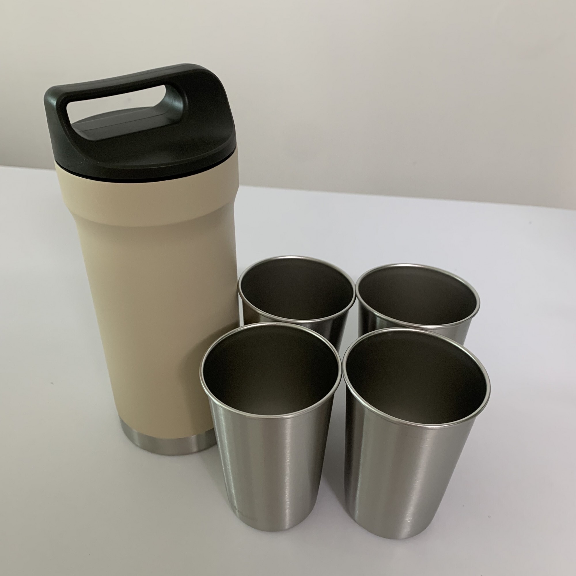 텀블러와 캔쿨러,스텐컵 4개를 함께 사용할 수 있는 세트예요