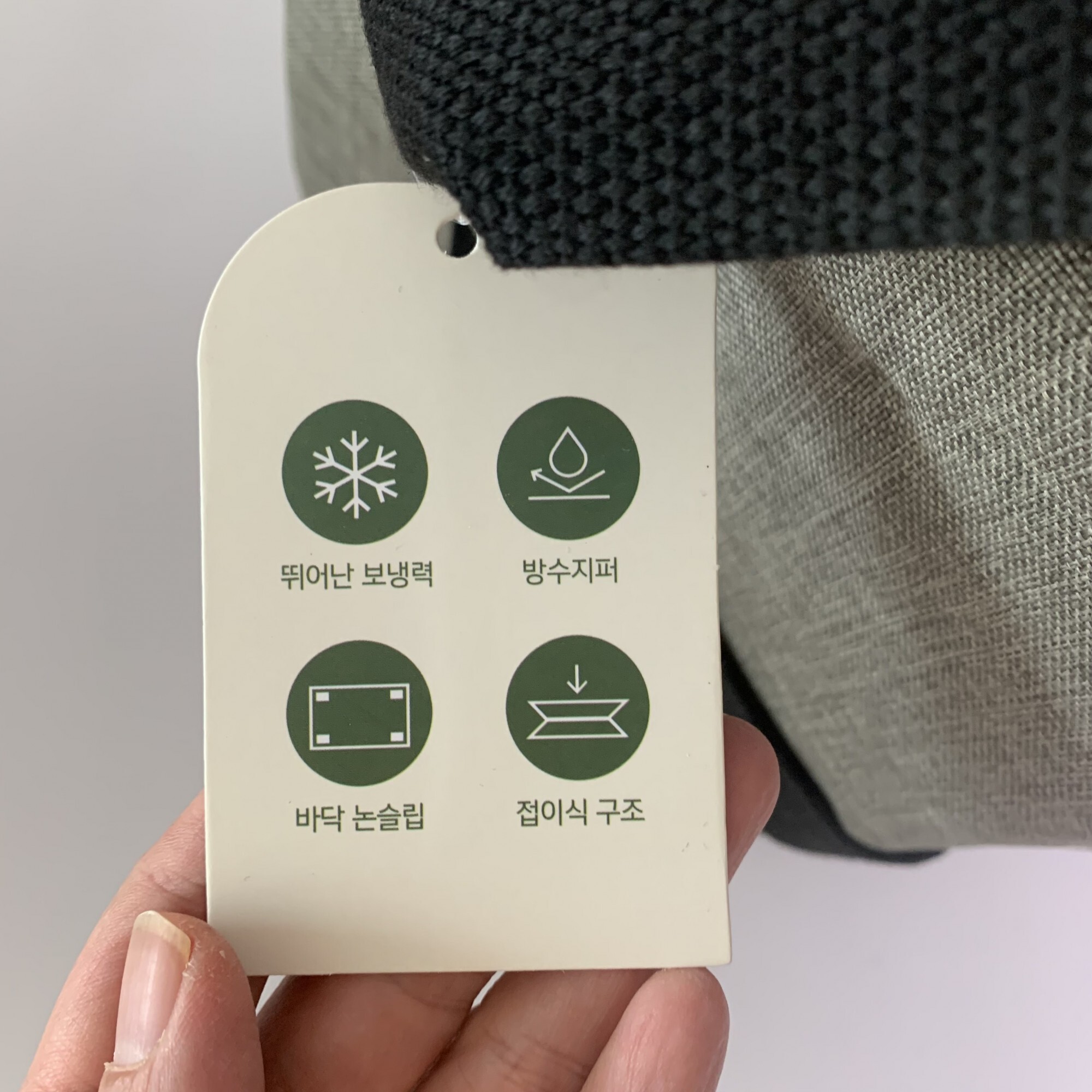 설명서에 나와있는 것처럼 보냉력과 방수지퍼, 바닥이 미끄러지지 않도록 하고