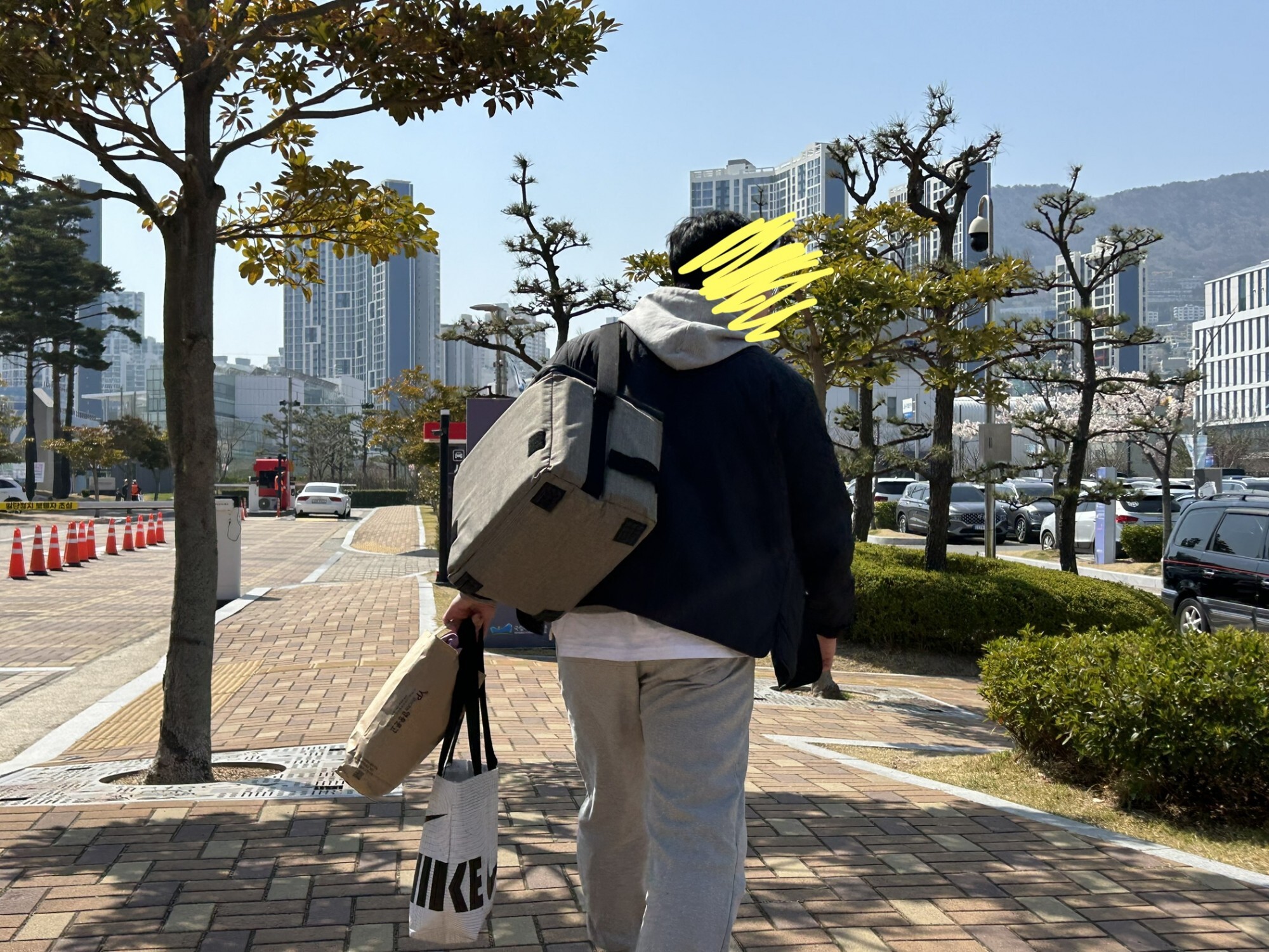 쿨러백 메고가는 남자친구 뒤에서 찰칵!