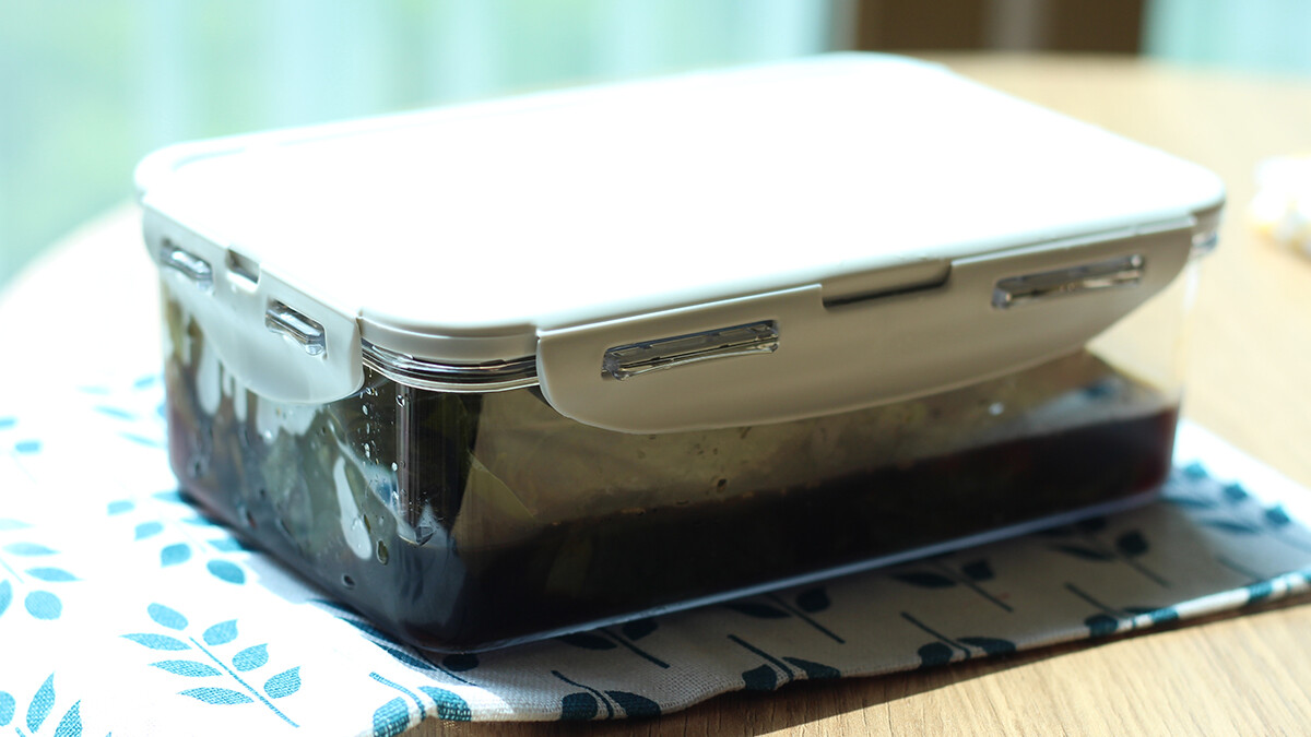 직사각의 1리터 용기라 밑반찬 넉넉하게 만들어 담아놓기 좋더라고요.