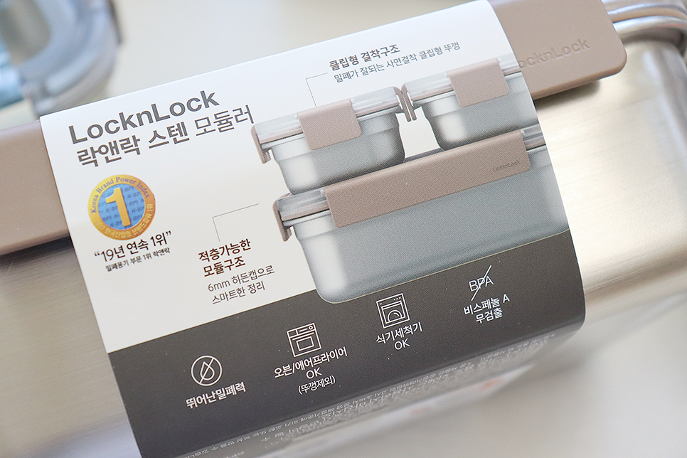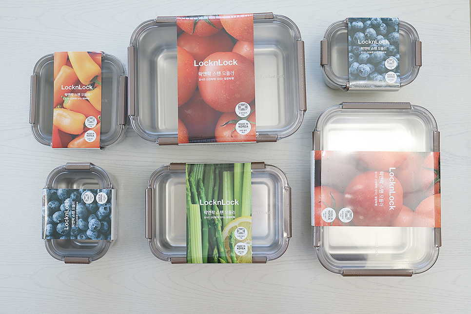 락앤락 스텐모듈러는 포스코 SUS304J1으로 만들어졌는데, SUS304에 비해 구리가 포함되어 있어서 음식 담는 용기에 더 적합해요~