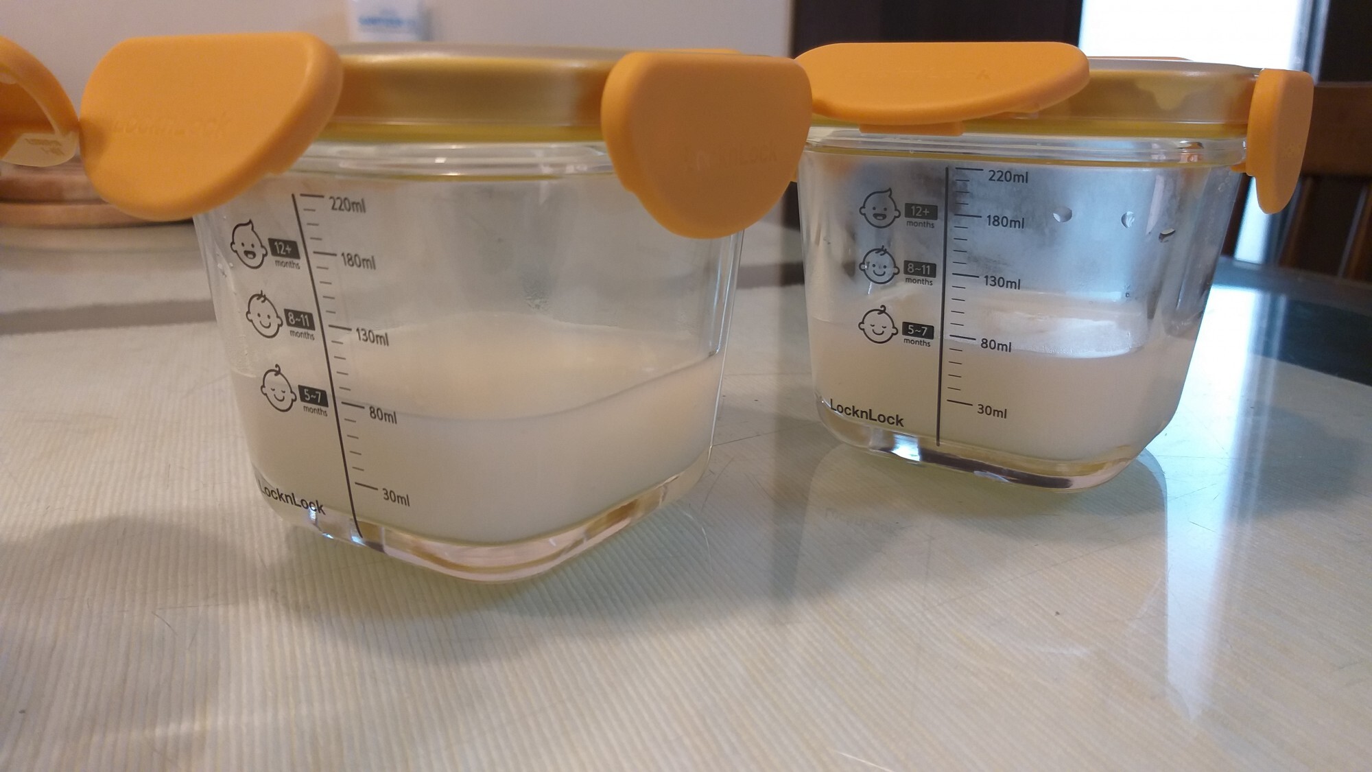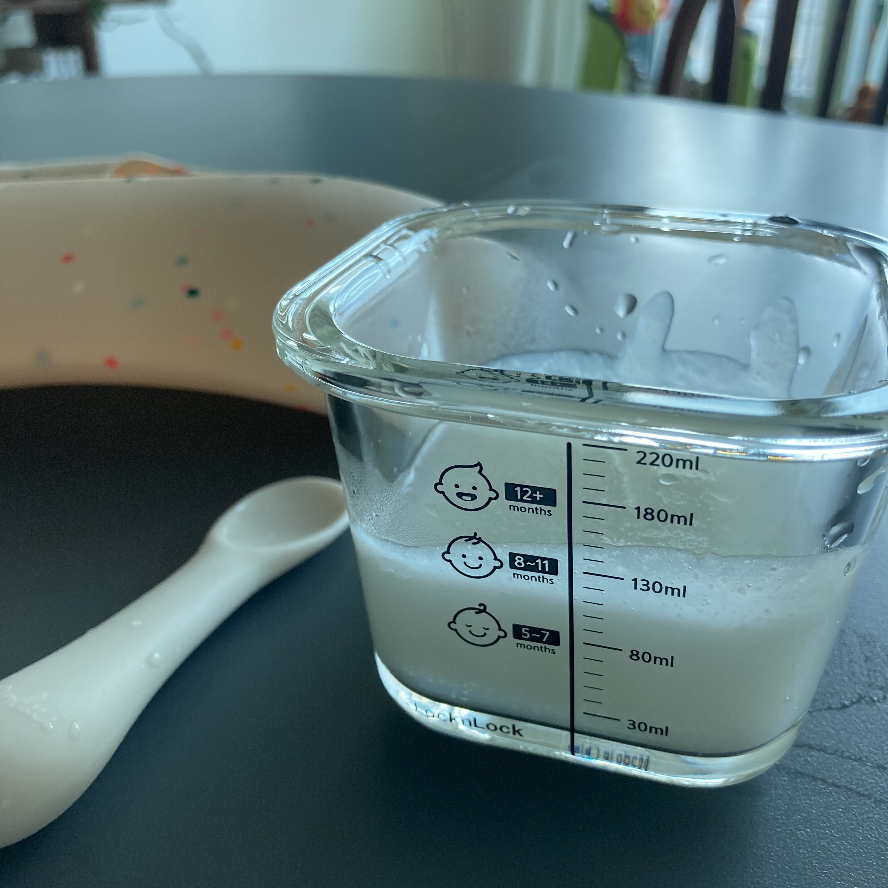 아이가 얼마나 먹었는지 자세히 알수 없었다는 의견이 컸어요. 그런데 이번에 나온 이유식 용기는 용량도 커졌을뿐더러 눈금이 세분화되어있어서 용량을 체크하는데 더 유리하더라구요. 사진과 같이 가득 채웠을때는 260ml까지 차고 뚜껑부분까지 하면 270ml까지는 될거 같아요.