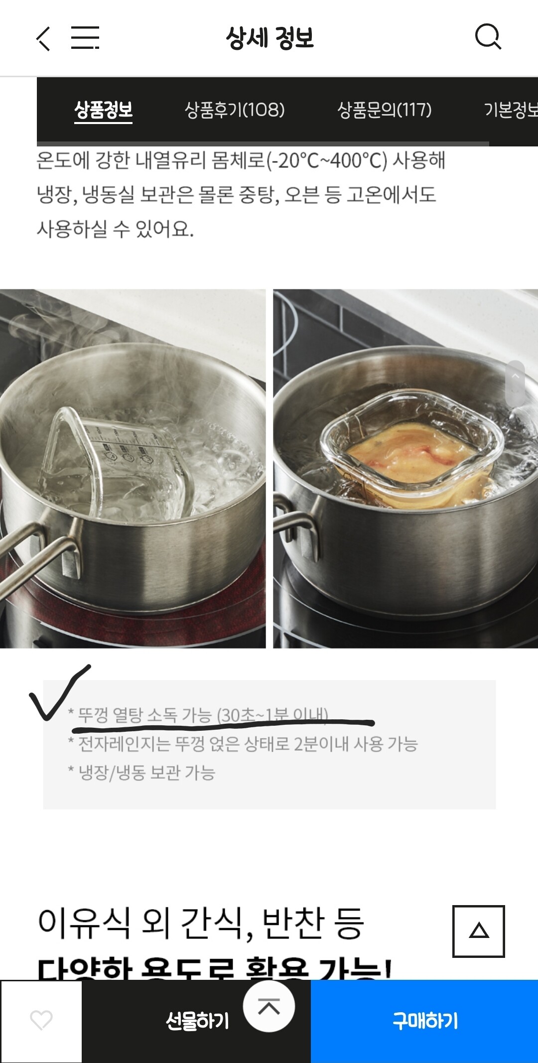 열탕 소독 상세페이지 안내 대로 30초 1분 이내로 열탕 소독 가능하나,