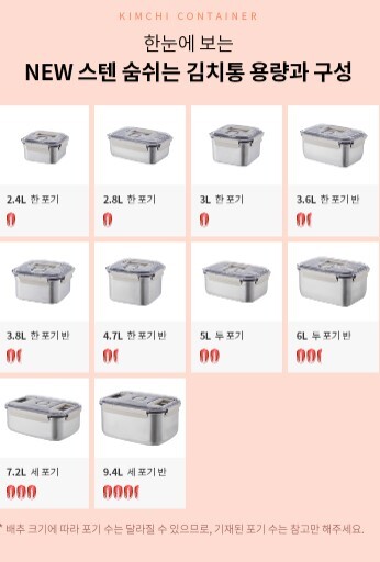 숨쉬는 스텐김치통 제품 배추 포기별로 참고해보실 수 있도록 사진 첨부드립니다 :)