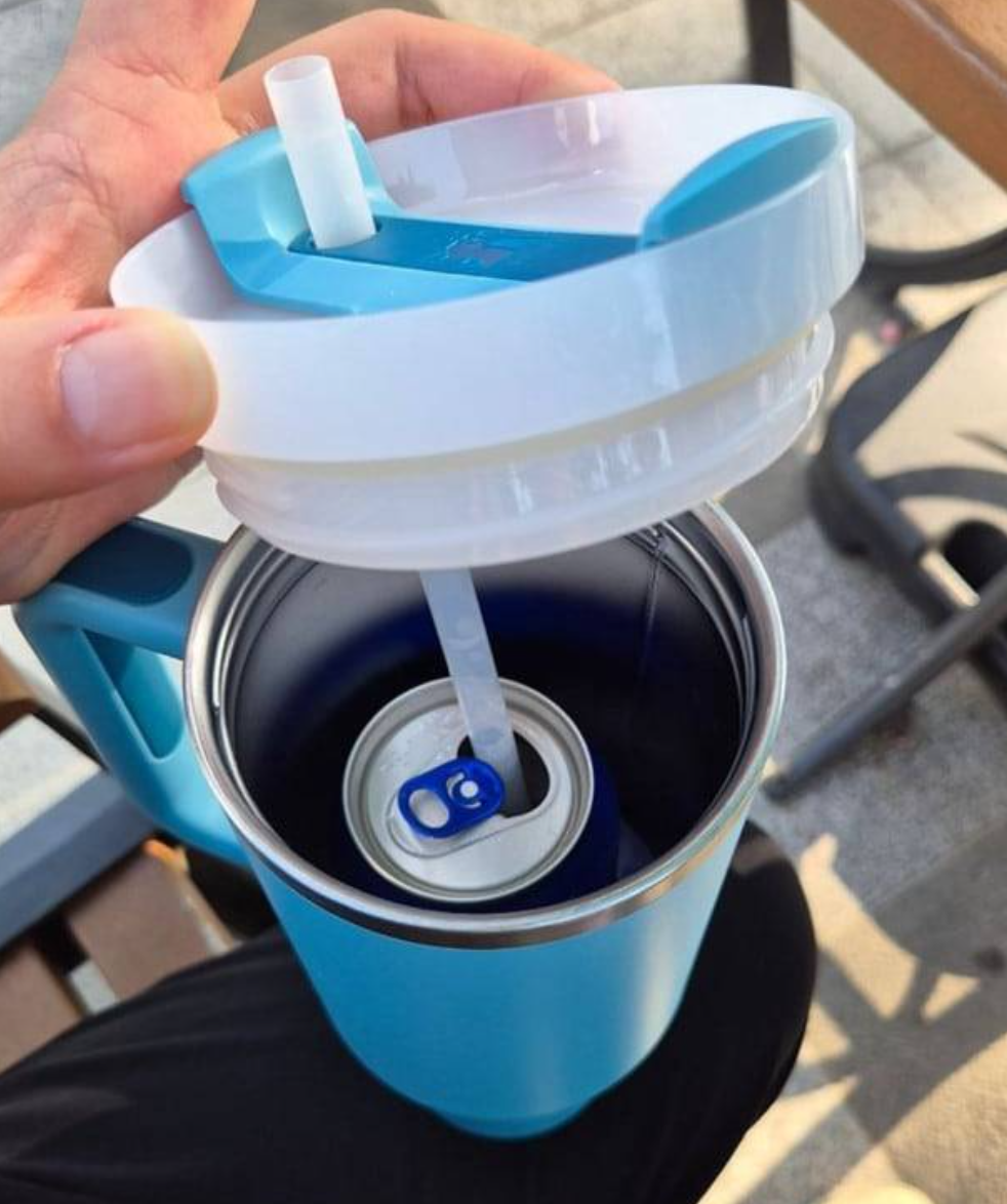 입구 지름 약 10cm 예상 → **캔맥주(6.5cm)**는 충분히 들어가지만,