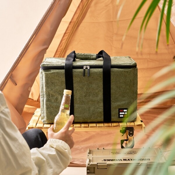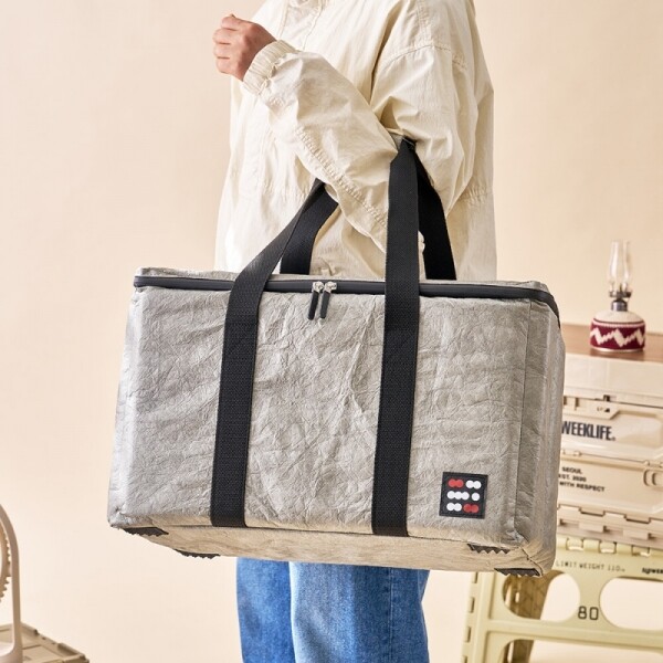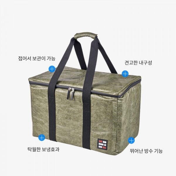 재질 겉감,손잡이커버: 합성고밀도폴리에틸렌/ 중간단열재: 폴리에틸렌/ 안감: 폴리염화비닐/ 손잡이, 어깨스트랩: 면