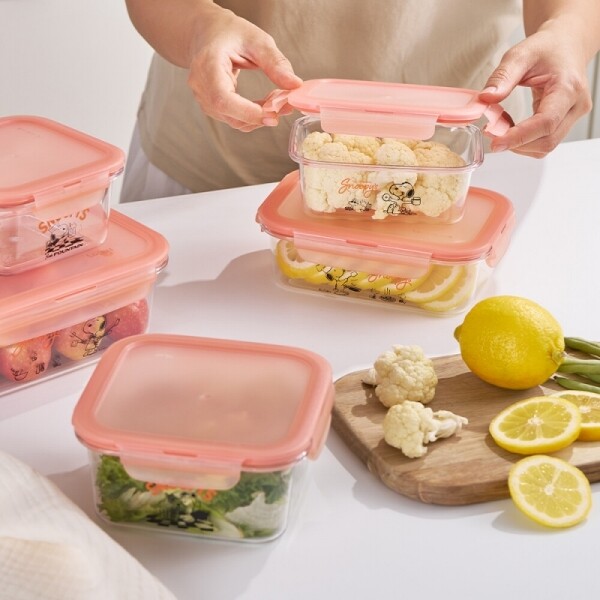 구성품 스누피 사각 밀폐용기 930ml 정사각