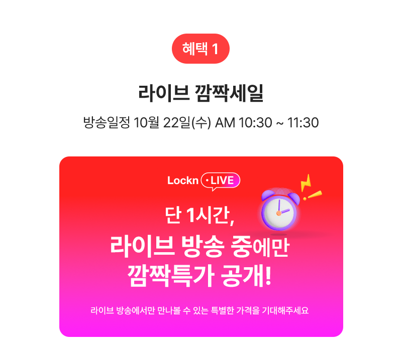 • 본 이벤트는 라이브 방송시간 동안에만 한시적으로 진행하는 프로모션입니다.